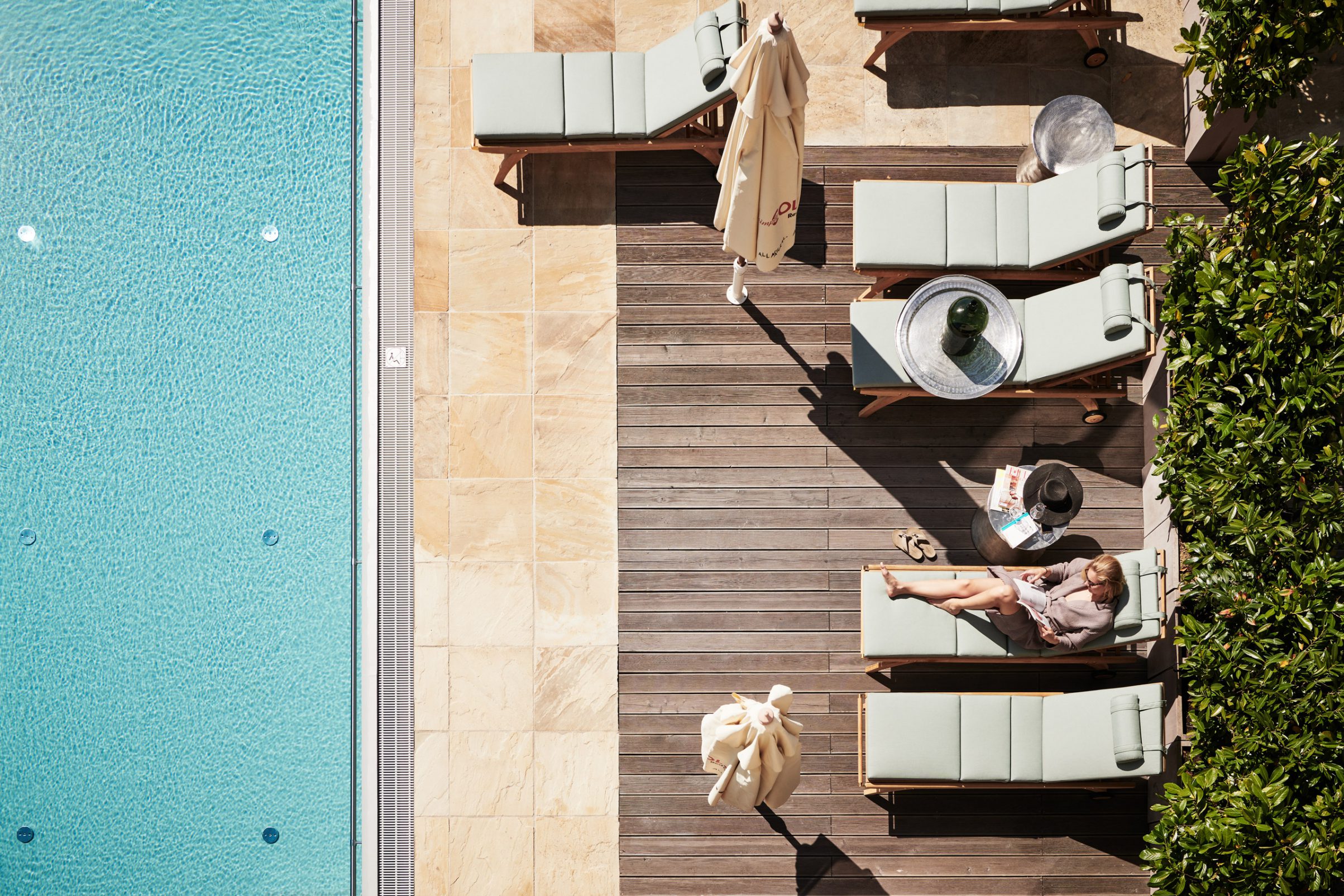 Pool Essentials in der Südsteiermark: Ein Glaserl Wein, ein gutes Buch, die Sonnenbrille – und unsere Pößnitzberg Badetasche zum Pritscheln darf natürlich auch nicht fehlen! ☀️